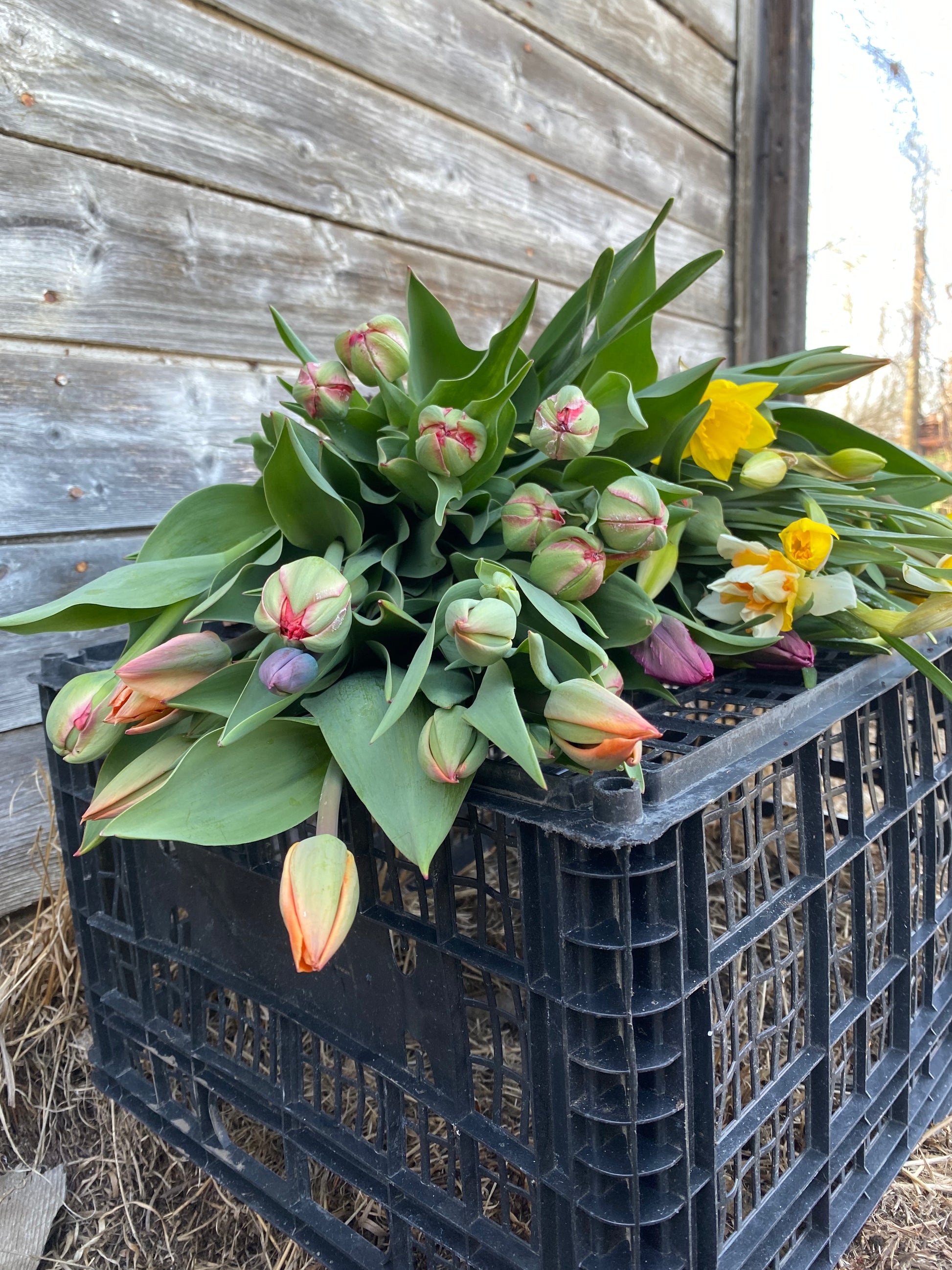 Each delivery features hand-selected varieties grown in our gardens and chosen for their standout qualities—think elegant doubles, ruffled fringed blooms, bold parrots, long stems, and rich, unforgettable colours. These are tulips with presence… definitely not the supermarket kind.